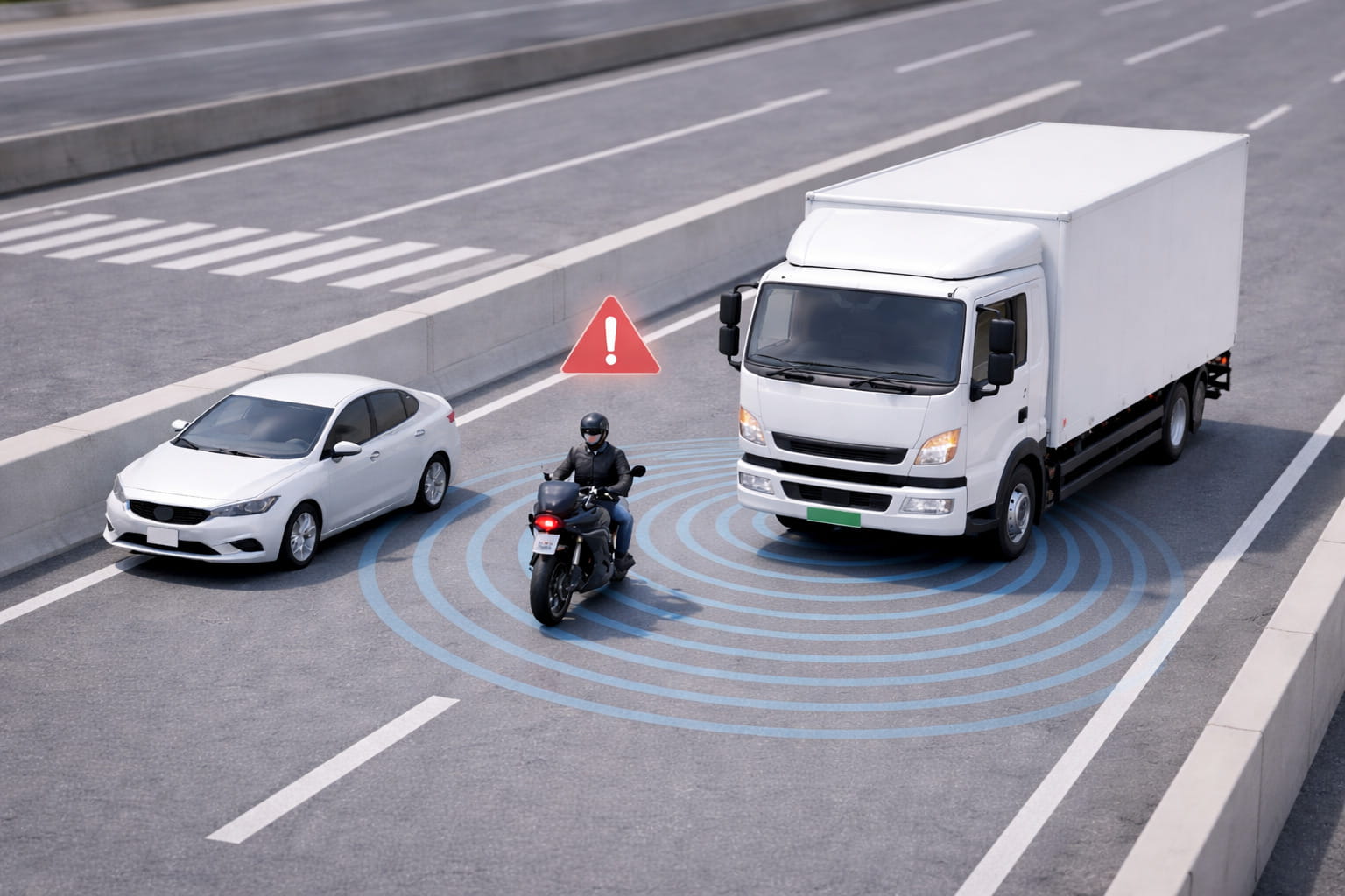 左折時に歩行者や自転車などを側方レーダーで検知し、警告や自動ブレーキで巻き込み事故を防ぐ安全支援システムです。